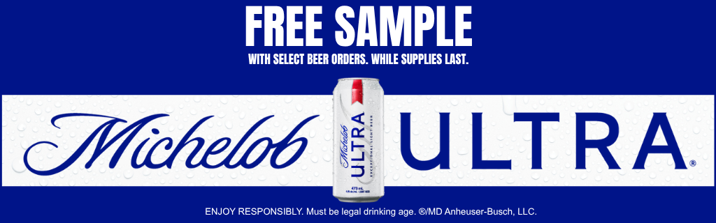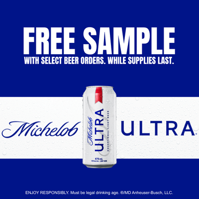 Select beer orders receive a FREE can of Michelob Ultra along with next delivery